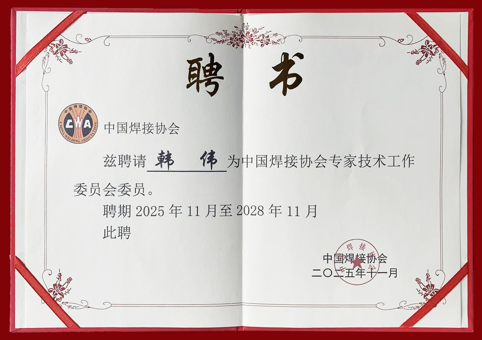 權威認可!光之聚激光總經理韓偉受聘中國焊